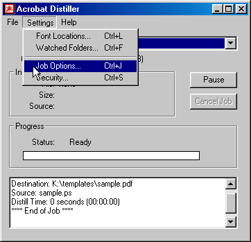 In the distiller select Settings | Job Options as shown in the first image -