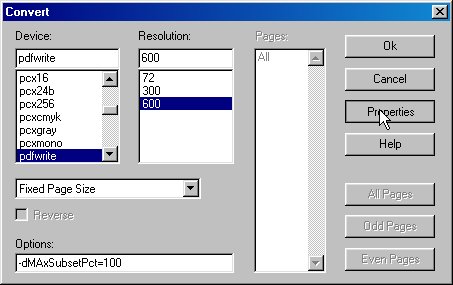 In the ensuing window, in Options textbox type in "-dMAxSubsetPct=100", then follow screenshots below: