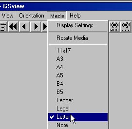 To do this, in the GSview menubar at the top click on "Media" and select Letter as shown below: