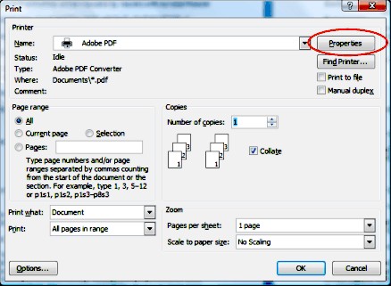 Click on OK to close the Properties window and again on OK to start the conversion to pdf.